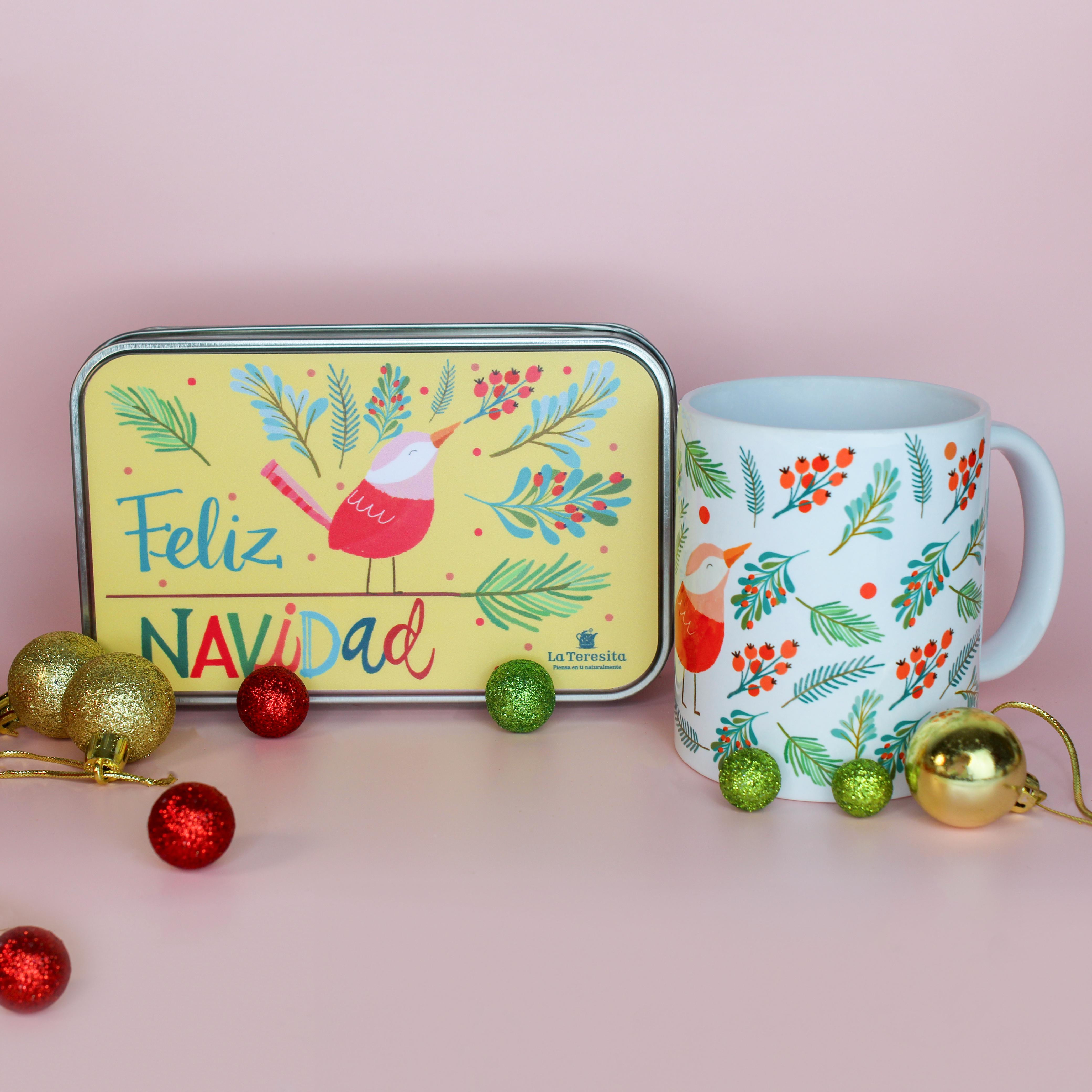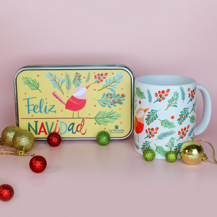 Caja Metálica x 12 infusiones y Mug con el diseño Pajarito