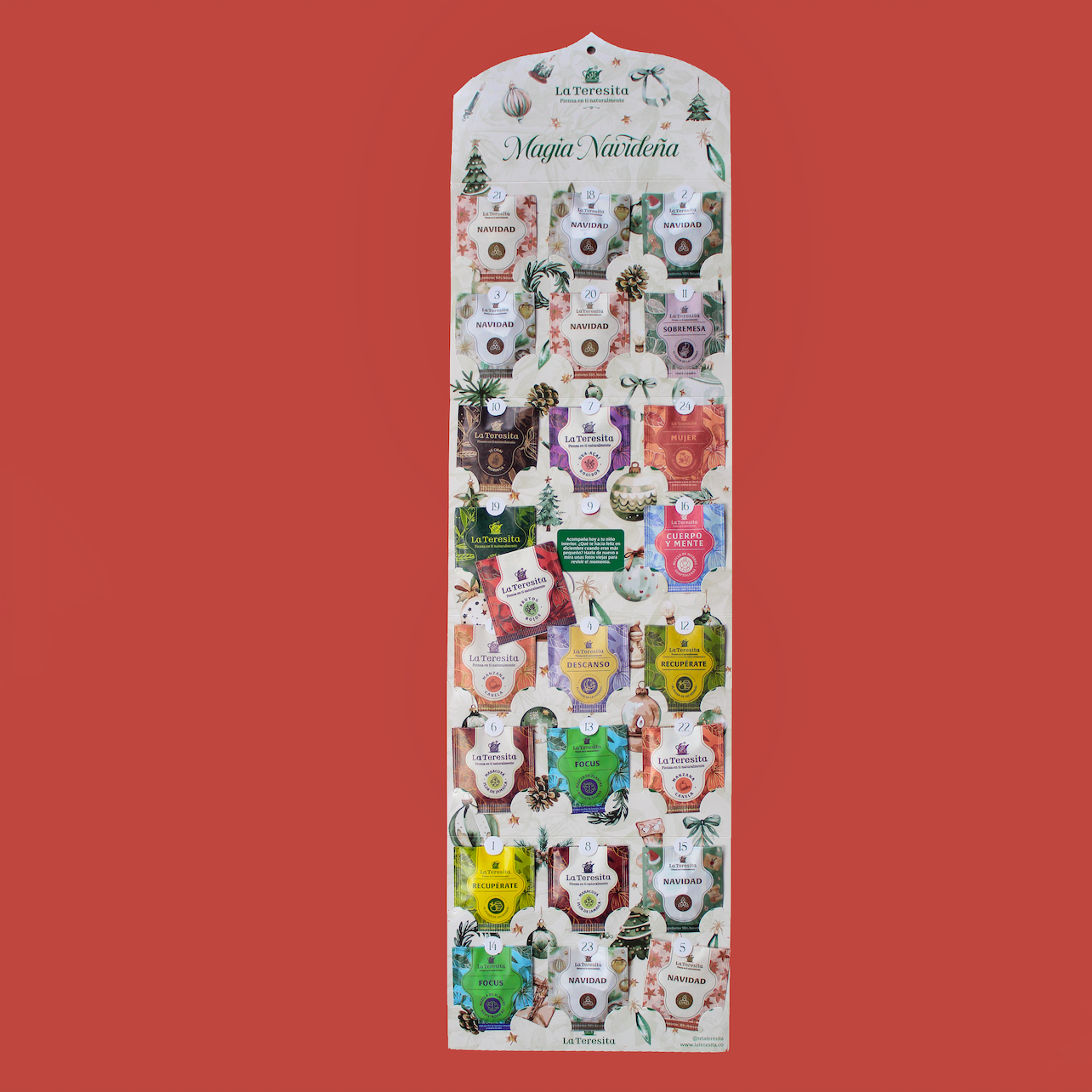 Este calendario incluye 24 infusiones surtidas, una para cada día previo a la Navidad, acompañadas de mensajes especiales que inspiran calma, amor y bienestar.