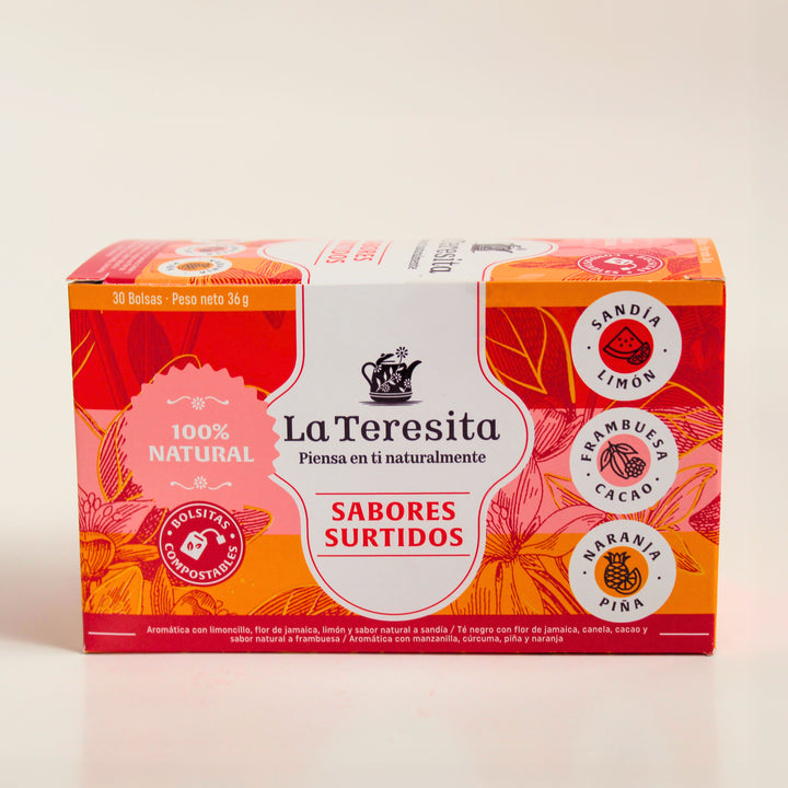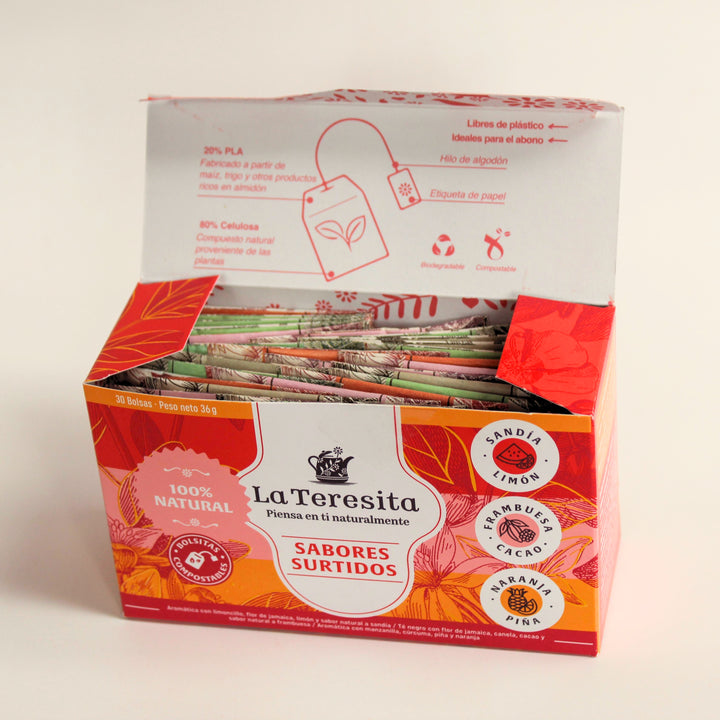 Descubre una experiencia única con nuestra caja surtida de 30 infusiones de frutas exóticas, creadas para sorprenderte con combinaciones naturales, frescas y llenas de sabor.