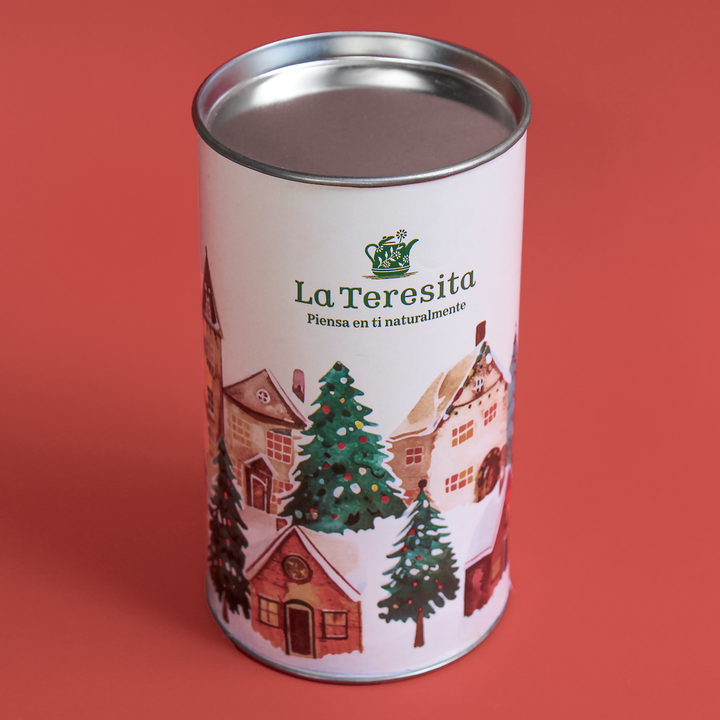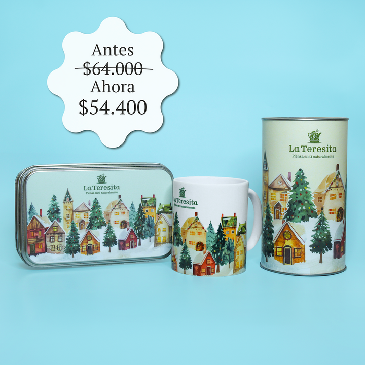 Cada kit incluye una cajita metálica con 12 infusiones especiales, u tarrito navideño x30 infusiones especialess y un mug con el mismo diseño.